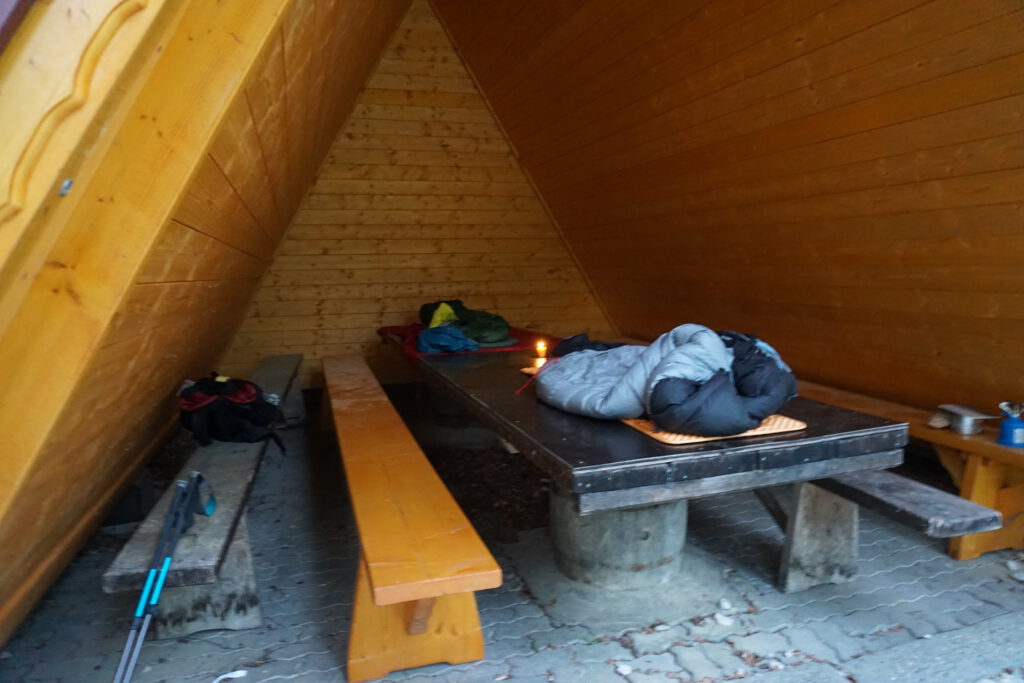 Wer es rustikaler mag, kann den Weg als Selbstversorger-Tour von Unterstand zu Unterstand gehen. Entlang der Route stehen unbewirtschaftete Schutzhütten. Manche bieten Tische, Bänke und Feuerstellen, andere nur ein Dach über dem Kopf. Toiletten gibt es generell nicht. Für mich war das ideal, um die Tour als Biwaktour zu gestalten – im Trockenen schlafen, aber trotzdem ganz nah an der Natur.